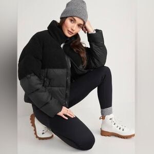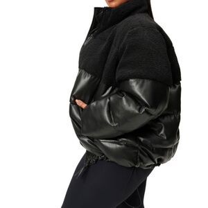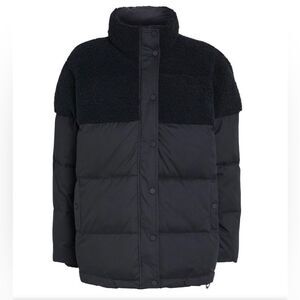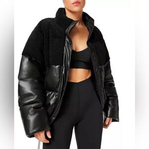 Good American Sherpa Mix Cocoon Puffer Jacket Black size 3 / Large NWT