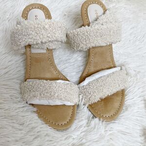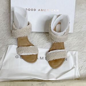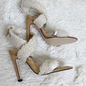 Good American Sherpa Sandals Cream NIB Size 6 Stilettos