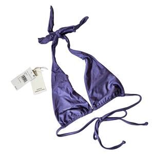 Good American Shine Ruched Halter Top Swim Lilac Mist 1 Women's Small Beach Pool