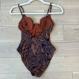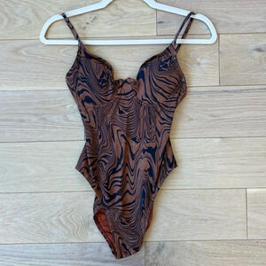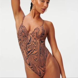 Good American Show Off Underwire One Piece Swimsuit Chai Swirl Size 1 or Small