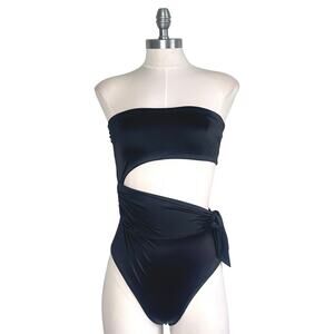 Good American Side Tie Cut Out One Piece Strapless Swimsuit Silky Black