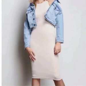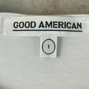 Women's Good American Midi Dress Size 1 which is equivalent to a US Small. White Micro Rib in a Tank Style that is lined. Gently Used, NOTE: No Content Tag but does have stretch. Please see pictures for details.