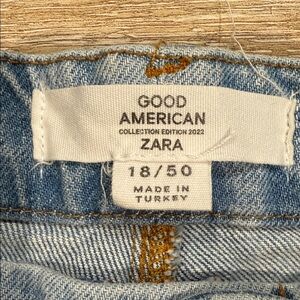Stylish straight leg jeans from Good American. Soft light blue denim. Perfect for casual wear.