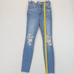Good American Skinny Jeans Distressed Raw Hem High Rise Women 0/25 Stretch Blue