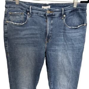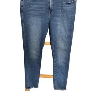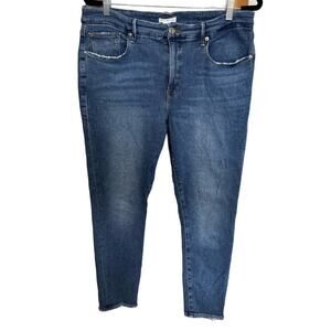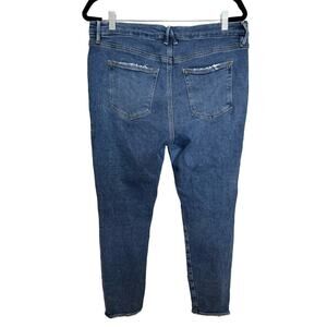Good American Skinny Jeans Mid Rise Ankle Length Raw Hem Indigo149 Size 14