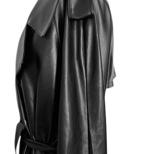 Good American Sleek Black Faux Leather Vegan Lined Trench Coat Sz S/M New WOT