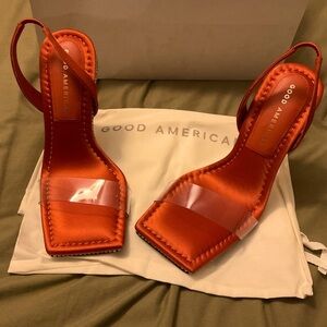 Good American Slingback Ombre Heel Satin Clear/Crystal Sandal - Size 4