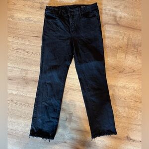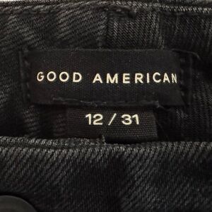 Good American Soft Tech Black Good Legs Straight Mid Rise Stretch Jeans 12/31