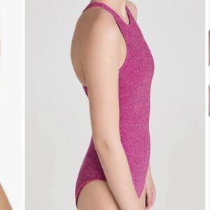 Good American Sparkle Racerback Hawaiian Pink One-Piece Swimsuit Sz L 10- 12