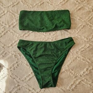 Good American Sparkly Summer Green Bikini Bandeau Size 4