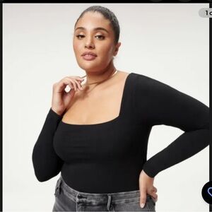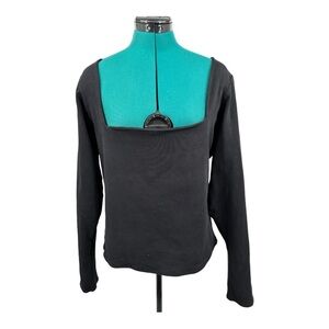 Good American Square Neck Long Sleeve Top Black Sz 6 (3XL)