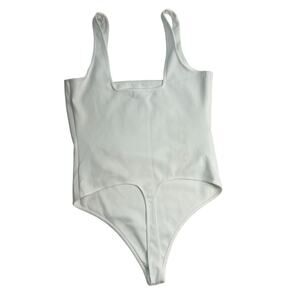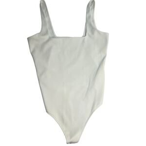 Good American Square Neck Tank Thong Bodysuit White Snaps Size 3 US Large NWT