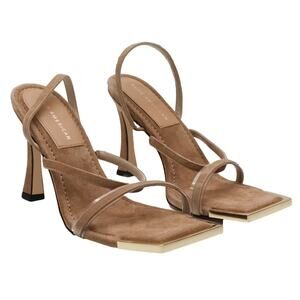 Good American Square Toe Heels Sz 7.5 The Standout Beige Suede Gold Sz 7.5 Sexy