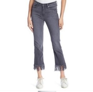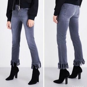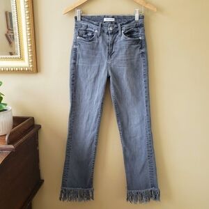 Good American Straight Leg Crop Fringe Hem Grey Gray Jeans Size 26