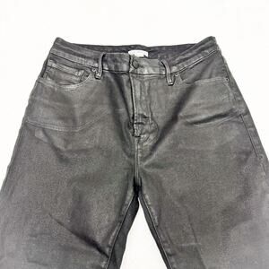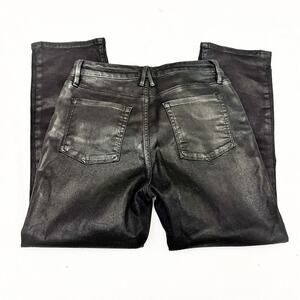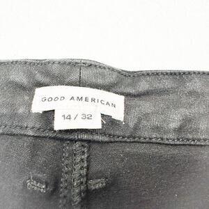 Good American Straight Leg Denim Jeans Black Coated K103 GS001T Size 14/32