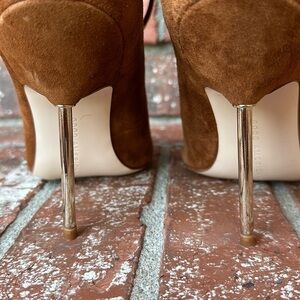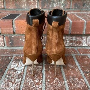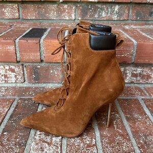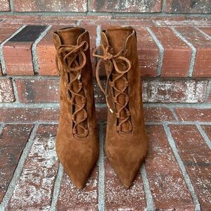 Good American Suede Tobacco Scandal Lace Up Stiletto Booties Women's Size 7