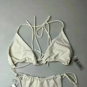 Good American Swim Triangle Top Women Ivory White Tiny Ties Bikini XL NWT