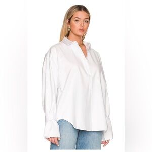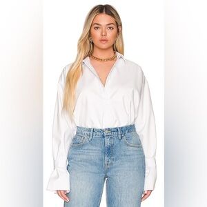 MSRP $125 Good American Tabbed Poplin Shirt in White001 NWT GA Size 3/4 Size L/XL