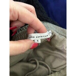 Good American Tan Beige Shine Boyfriend Wind Pants Joggers Women's Size 1 S