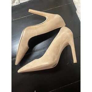 These Good American heels feature a sophisticated pointed-toe design in a versatile tan color, perfect for elevating any outfit. Crafted with a high, slim heel, they offer a seamless blend of elegance and style. Their minimalist construction ensures they are a timeless addition to any wardrobe.