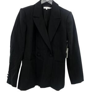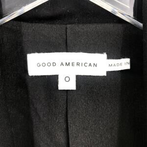 Good American The Boss Blazer 2.0 Sz-0 Double Breasted Padded Pocket Black NWT
