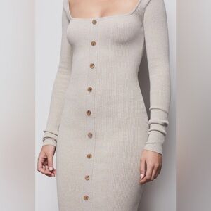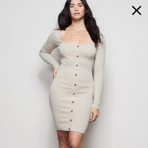 Good American The Button Up Sweater Dress Oatmeal Sz 5 XXL