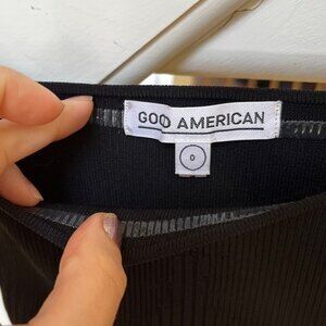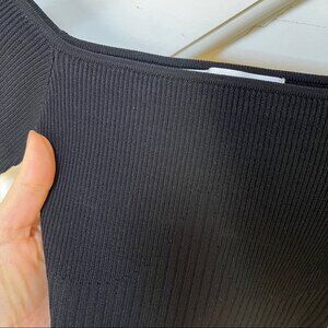 Good American The Off Shoulder Ribbed Knit Sweater Pullover in Black 0 NWOT