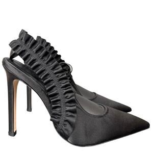 Good American The Show Off Slingback Pump In Black Satin Women’s Size 11 US