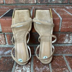 Good American The Standout Square Toe Strappy Sandal Nude Suede Women's Size 7