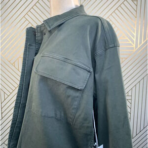 Brand new with tags Good American The Utility Jacket in Olive Green. Classic and a easy design gives this jacket a must have vibe.