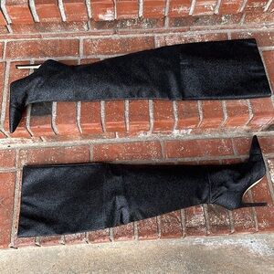 Good American The Weekend Black Glitter Slouchy Thigh High Boots Women's Size 6.5