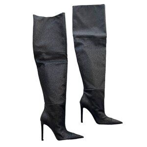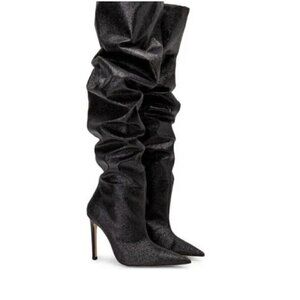 Good American "The Weekend" Black Glitter Over The Knee Slouch Boots. Boots are a woman's size 7. Brand new with dust cover. Made in Spain. Org. list price $295.