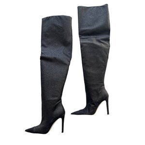 Good American The Weekend Black Glitter Slouchy Thigh High Boots Womens Sz 7 NEW