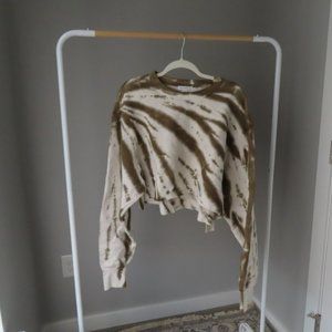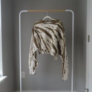 This sweatshirt is the perfect blend of comfort and style, featuring a trendy tie-dye print, extra-long sleeves with dropped shoulders, and a cropped profile with a raw hem.