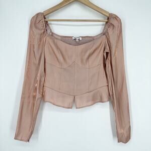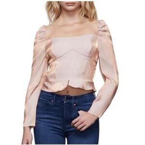 Good American Too Tempted Top Rose Gold Peplum Puff Sleeve Corset Stitch Blouse