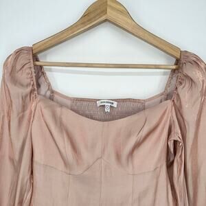 Good American Too Tempted Top Rose Gold Peplum Puff Sleeve Square Neck Blouse