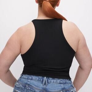 Good American Top Micro Rib Crewneck Sleeveless Racerback Tank Black NWT XL