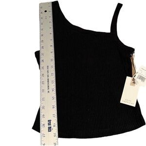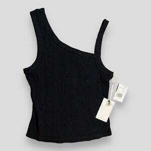 Good American Top Women’s XS Black Asymmetric Ribbed Tank Sleeveless Crop 0