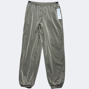 Good American Track Pants Women S Tan Nylon Joggers Mesh Lined Pockets Athletics