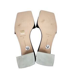 Good American Translucent Strap Square Toe Black Slides Block Heel Size 7.5