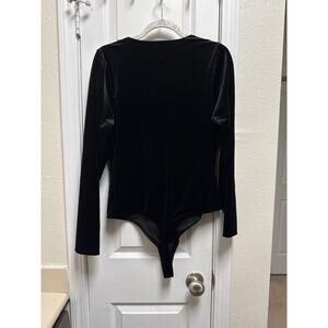 Good American VNeck Black Velvet Long Sleeve Thong Bodysuit Size XL Goth Grunge