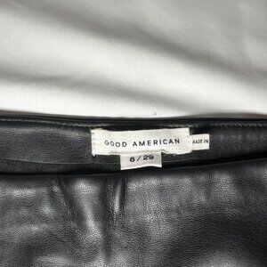 Good American Vegan Leather black miniskirt. Slight snag in zipper but zips all the way up. Size 8 (aka 29). MSRP $48