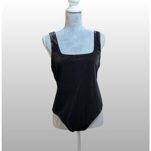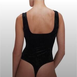 keywords: Good American, velvet bodysuit, square neck, sleeveless bodysuit, size 4 bodysuit, sculpting bodysuit, black velvet top, Luxury, sculpting, layering, minimal chic, evening, date night, slimming