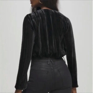 Good American Velvet Wrap Long Sleeve Bodysuit Top
