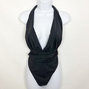 Good American Waist Cincher One Piece Swimsuit 4 XL Black T Back Strap NWOT