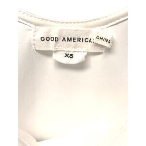 Elevate your basics with this Good American Bodysuit in white, size XS. Designed with a flattering scoop neckline, wide tank straps, and thong back with snap closure, this bodysuit offers a seamless look under jeans, skirts, or trousers. Made with a soft and stretchy fabric blend, it’s perfect for comfortable everyday wear or dressed-up nights out.