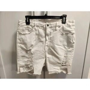Good American White Distressed Ripped Jean Shorts Plus Size