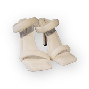 NIB: Good American White Terry Cloth Square Toed Heels. These heels are designed for the perfect modern professional.