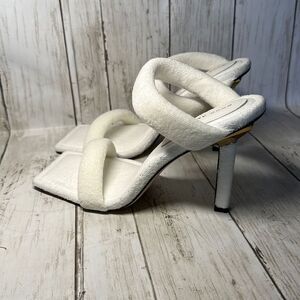 Good American White Terry Heels size 8 1/2 Style GA354T-X. New in Original Box with Dust Cloth. Box ripped on edge can see in pics