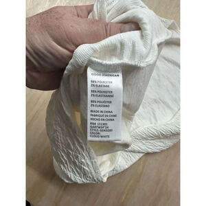 This sleeveless dress comes in a beautiful white color and features a solid pattern that makes it easy to style with other accessories. The dress is a fitted mini, perfect for showing off your curves. It has a pullover closure, making it easy to put on and take off. The dress is suitable for any season, whether it's winter, summer, fall, or spring. Add a touch of classic and sexy to your wardrobe with this dress. Some makeup marks on inside. See pictures.